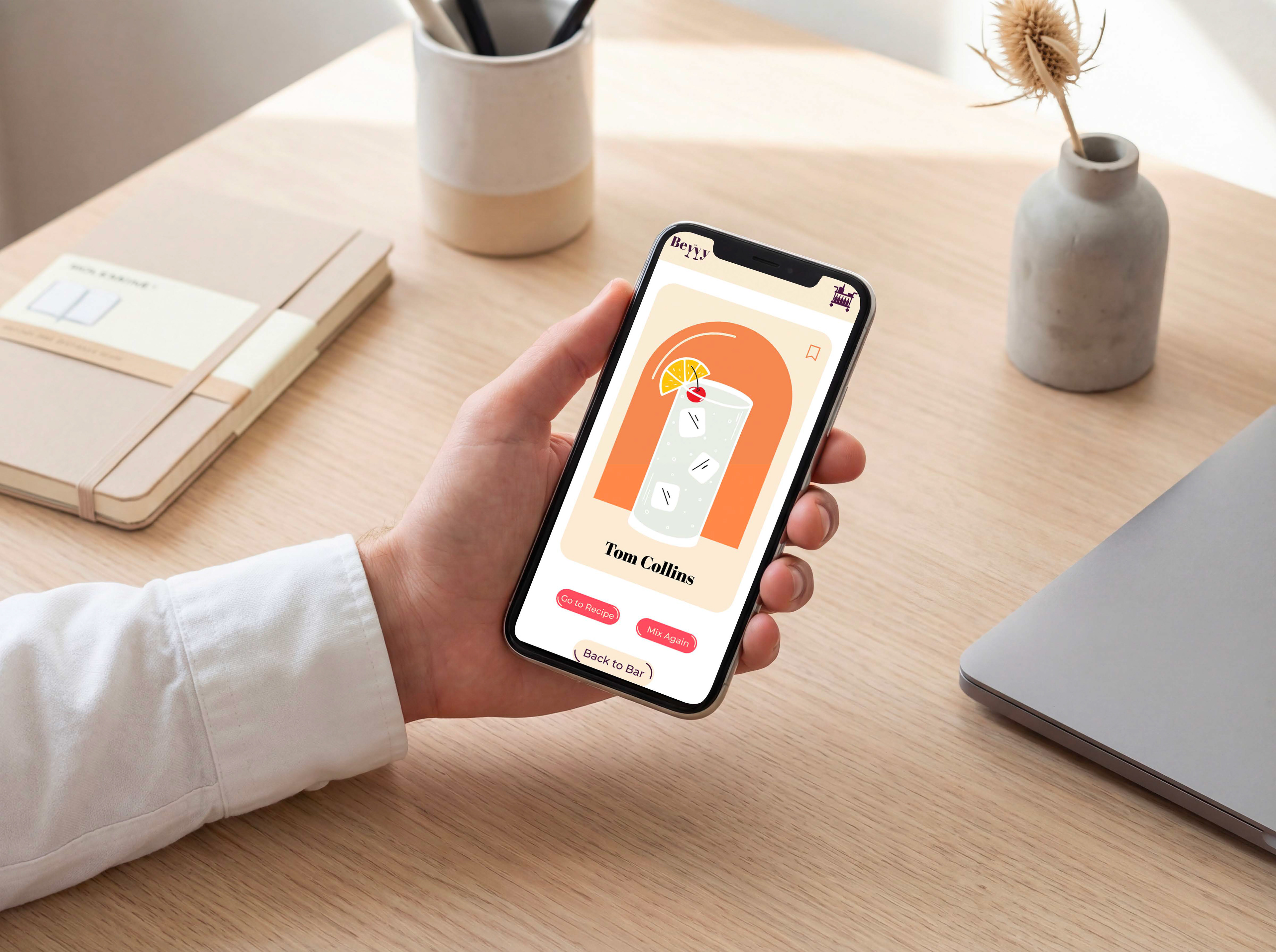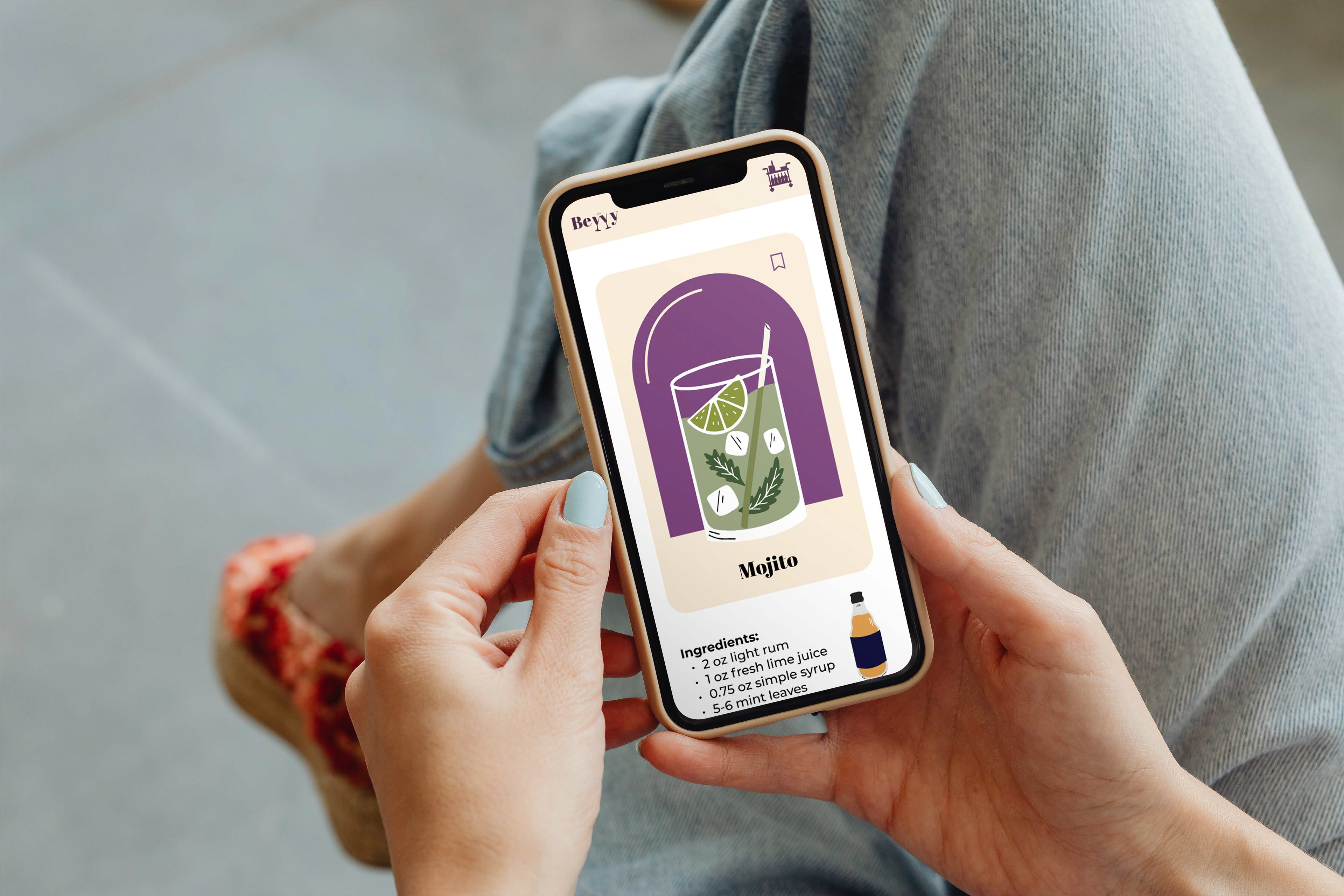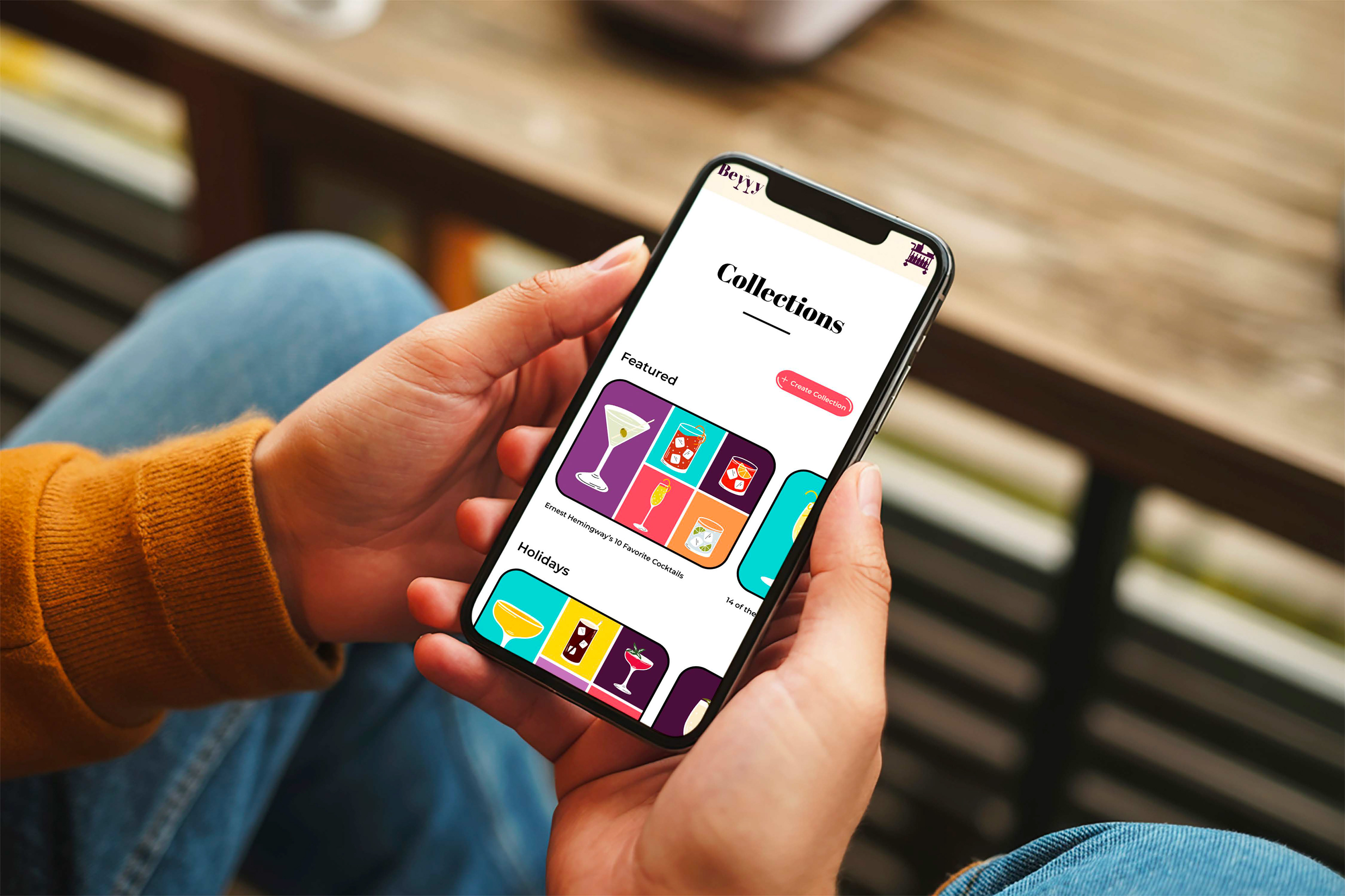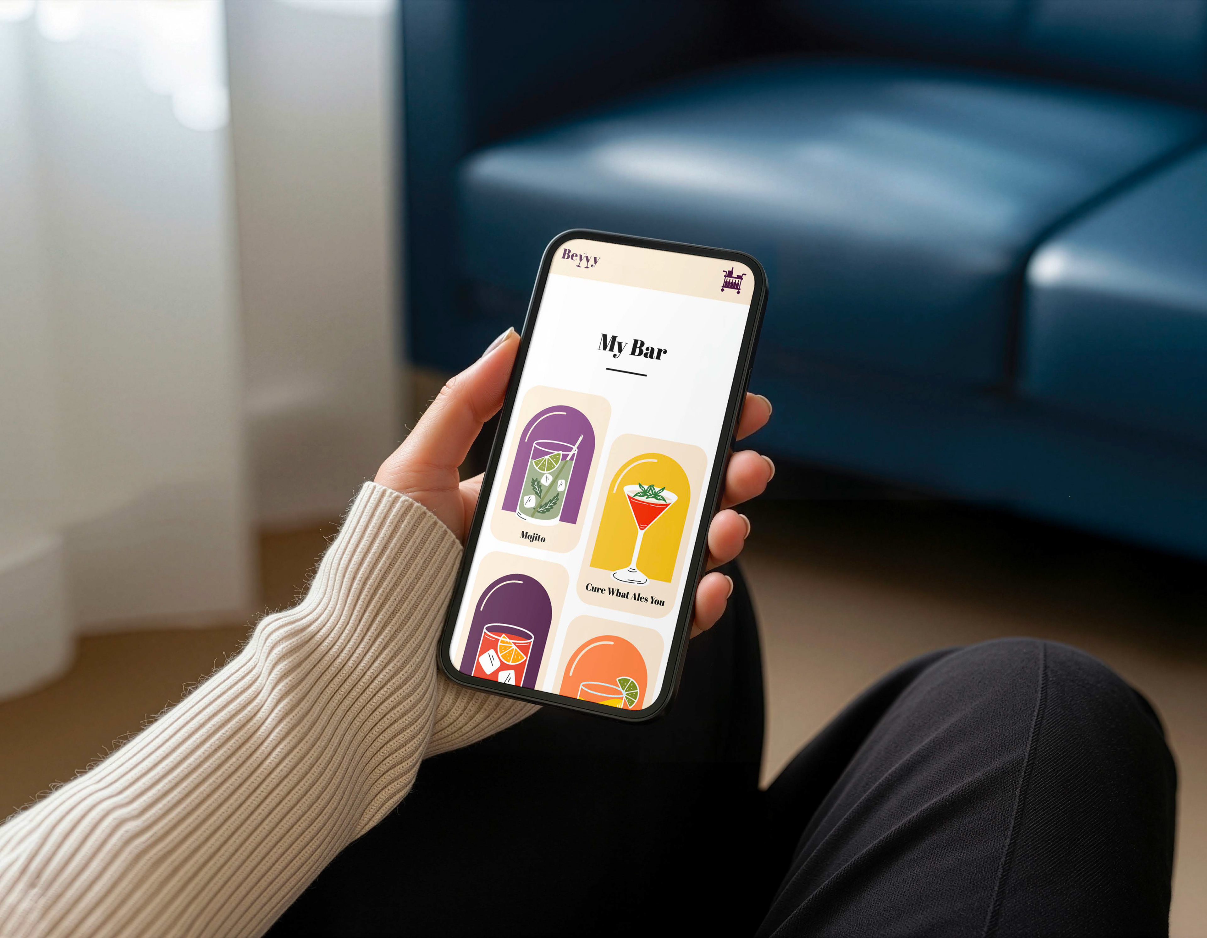 The idea was to redesign the Bevvy app in a fun, illustrative style that captured the vibrant culture of mixology. The app combines rich, bar-inspired colors and bold typography to create a sophisticated yet inviting cocktail discovery experience. A simple flavor preference system personalizes drink recommendations without overwhelming users. Playful illustrations and consistent visual branding reinforce the app’s identity while guiding users smoothly from onboarding to selection.